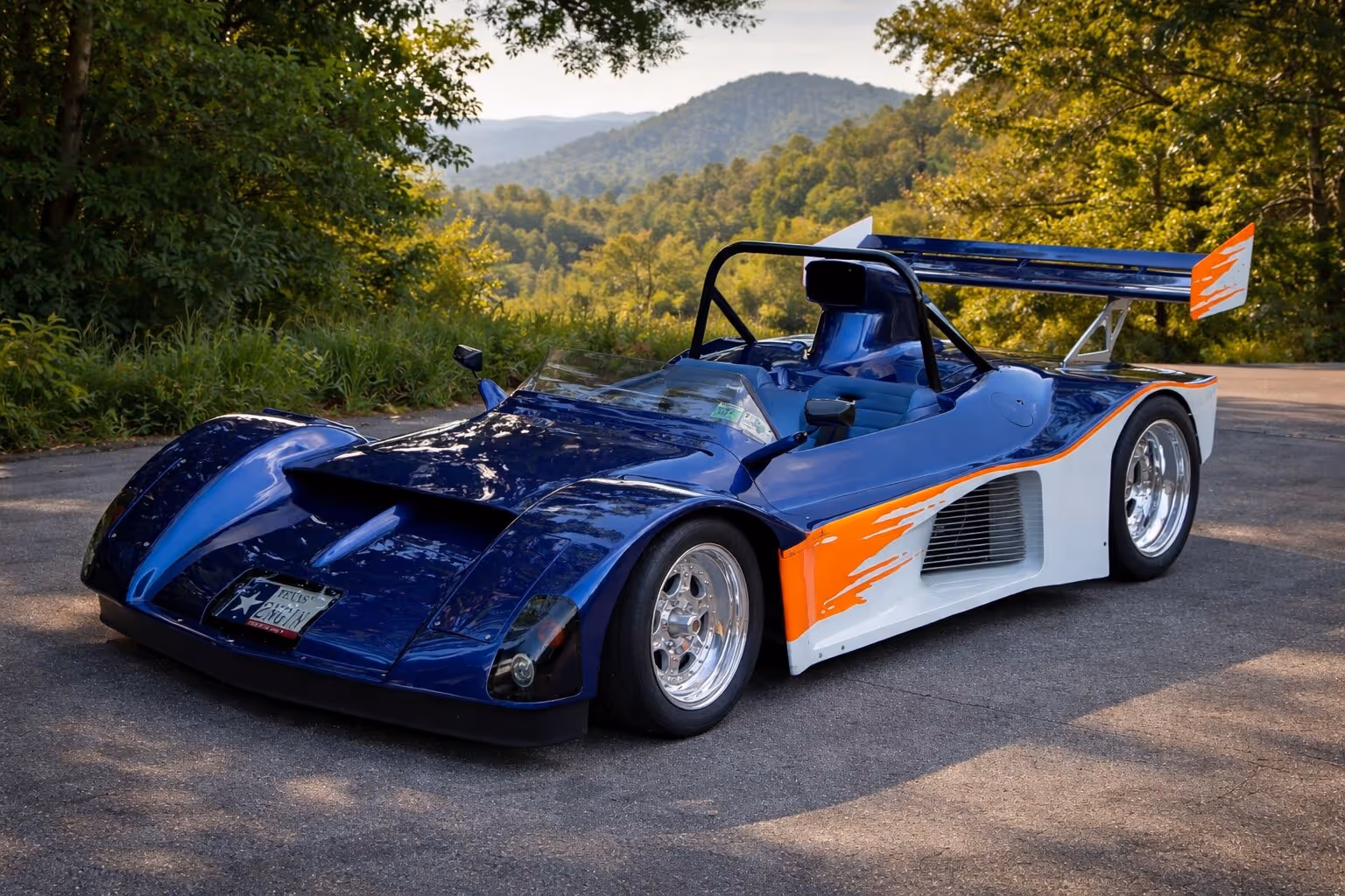 Designed and built by hand by George Carter III, this one-of-a-kind prototype starts with a 2002 Corvette Z06 donor platform with styling influenced by Le Mans Prototype racecars. Original systems, including traction control, ABS, and LS6 engine internals, were retained. Performance improvements include increased tire footprint, aerodynamic optimization, and a 500 lb weight reduction.